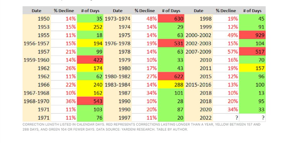 Brian Feroldi On Twitter How Long Do S Amp P 500 Corrections Last Since 1950 64 End Lt 4 Months 18 End Gt 4 Months But Lt 1 Year 18 End Gt 1 Year Nice Table By